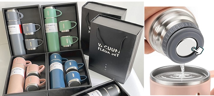 Este perfecto termo de acero inoxidable viene con 3 tapas que se pueden utilizar como tazas, su diseño elegante es perfecto para regalar en un día especial, nunca es tarde para sorprender.